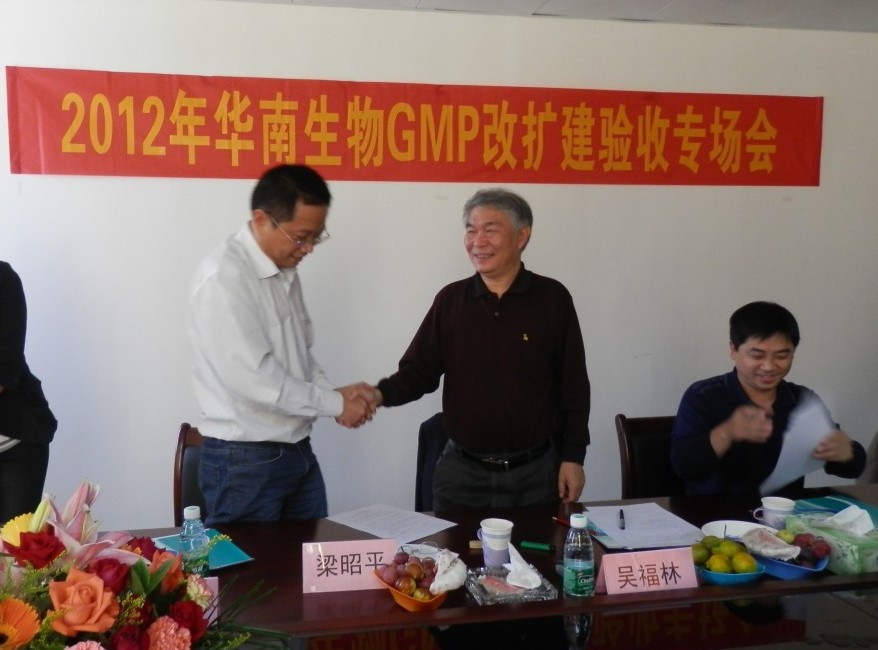 根据《兽药生产质量管理规范》的规定,依照《兽药生产质量管理规范检查验收办法》,农业部兽药GMP工作委员会办公室指派吴福林、张广川、魏财文、杨承槐4名检查员担任我司兽药GMP验收工作;广东省畜牧兽医局选派罗建民、李跃龙两名同志担任观察员,共赴广州市华南农大生物药品有限公司,对公司改扩建的胚毒灭活疫苗生产线、细胞毒灭活疫苗生产线进行为期2天的兽药GMP现场检查验收。