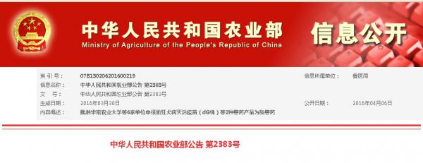 中华人民共和国农业部公告