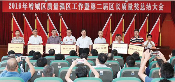 增城区区长质量奖是增城区政府设立的最高质量荣誉,旨在表彰在经营管理方面取得卓越绩效的企业,引导和激励广大企业建立和实施卓越绩效模式,提高产品、服务、工程和经营质量,持续改进经营业绩,增强增城区自主创新能力和综合竞争力。增城区已于2014年完成首届区长质量奖评审工作,社会对该奖项的颁布反响积极。2015年第二届增城区区长质量奖申报评审工作于2015年12月启动。评选工作历经企业申报,材料初审,材料评审,现场考评,综合评价,评委会秘书处、评委会成员单位和评审专家组评估,审议公示,审定报批等程序,得出最终评选结果。华南生物经过重重审核,荣获2015年增城区区长质量提名奖。我司将再接再厉,争获下一届增城区区长质量奖。