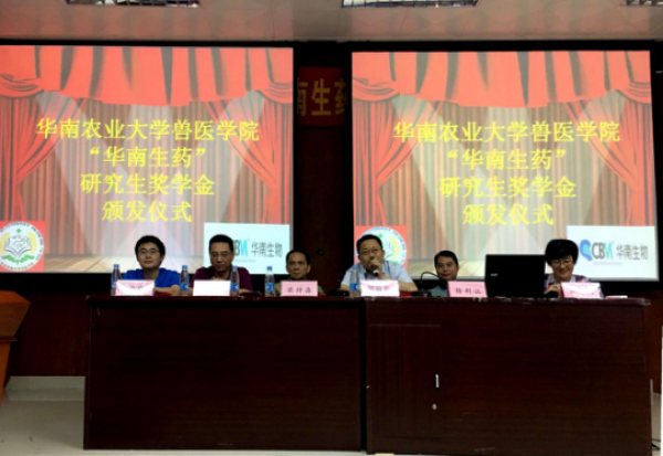 2017年5月24日上午,广州市华南农大生物药品有限公司(下称“华南生物”)在广州华南农业大学兽医学院开展了2017年“华南生药”研究生奖学金颁奖典礼,同时进行了“创新中的华南生物及就业指导”课程分享。