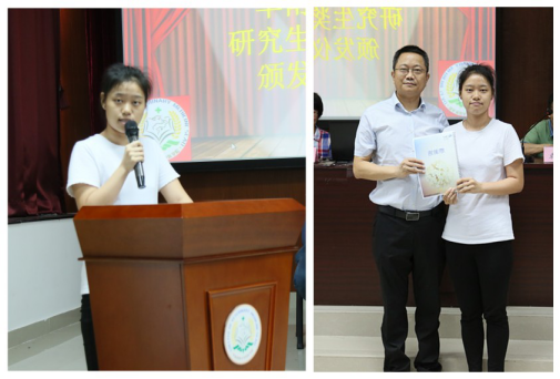 获奖代表朱梦娇同学发言,向华南生物表示敬意及感谢,承诺以后更加努力学习,时刻鞭策自己,以取得更加优异的成绩并投桃报李。