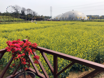 历经两小时车程,我们于十点抵达第一站“佛山高明区盈香生态园”,进入园区,映入眼帘的是金灿灿、一望无际的油菜花,还有竞相开放各色花儿,瞬间吸引了众女神的目光,纷纷迫不及待的掏出手机相机,与花儿亲密合影。