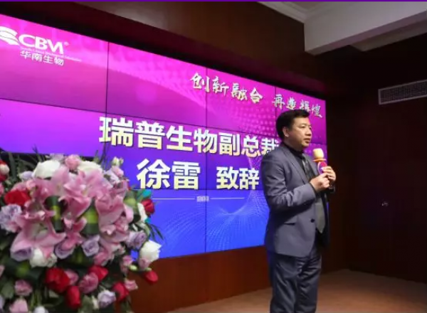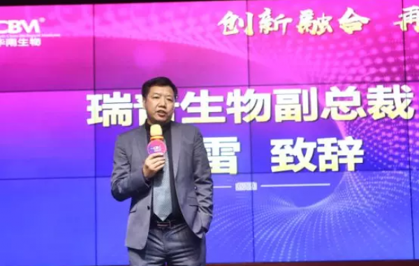 瑞普生物副总裁徐雷致辞,首先代表瑞普生物对公司2019年取得的骄人成绩致以衷心的祝贺!2019年是华南生物开拓创新的一年,市场的高速发展为企业带来了新的机遇;2020年,希望华南生物在产品升级和技术服务上发挥创新优势,在未来多变的市场竞争中,精准定位,立足打造禽流感高端产品战略。