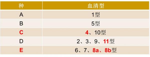 根据限制性内切酶消化不同,FAdV-Ⅰ分为A、B、C、D、E 5个种。根据血清交叉中和试验,可分为12个血清型。A对应的血清1型,B对应的血清5型,等等。血清型8b和11型之间有一定的交叉保护性,但大部分血清型之间几乎无交叉保护性。FAdV-Ⅰ主要在禽类呼吸道和消化道上皮细胞内复制,形成包涵体。C4型引起禽HPS;各血清型都能引起IBH,但主要是血清8a、8b和11型;A1、8a和8b型能引起禽肌胃糜烂。