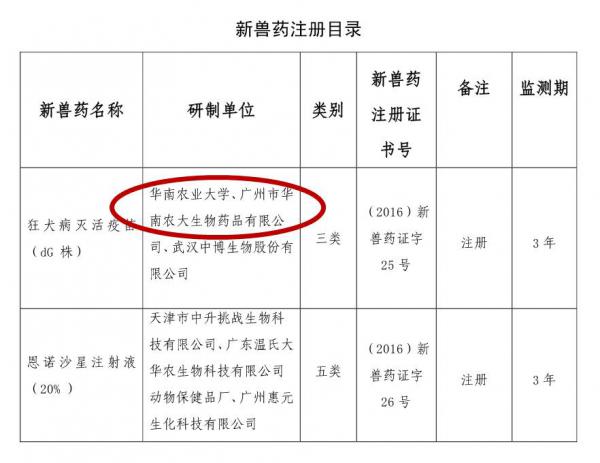 热烈祝贺华南生物狂犬疫苗新兽药证书注册成功!