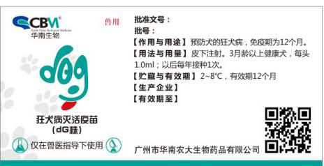 新兽药名称:狂犬病灭活疫苗(dG株)