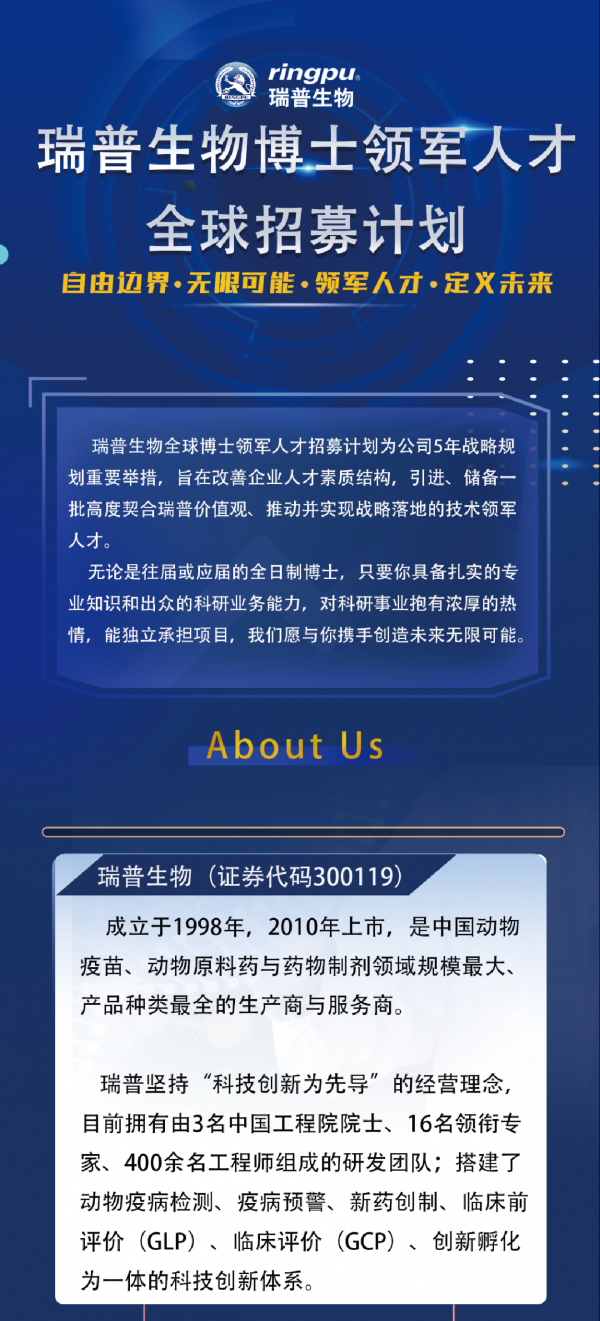 官宣第二弹 | 瑞普生物博士领军人才全球招募计划