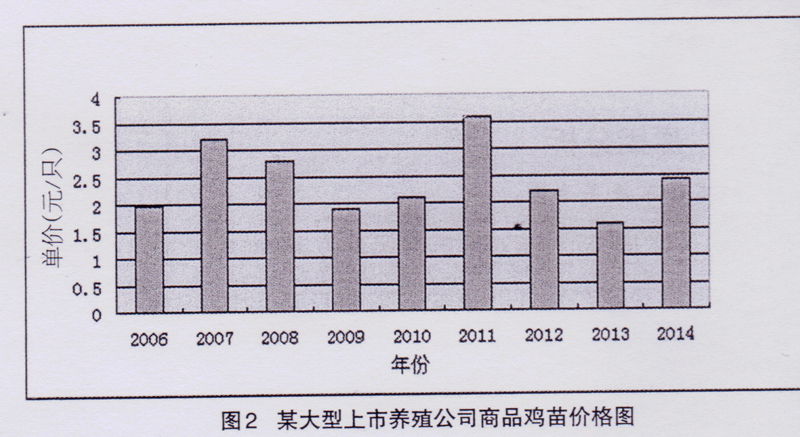 由连续统计9年的商品鸡苗价格柱形图可以很直观看出,全年平均价格超过3元/只的有2年。2.5元/只左右的有2年,2元/只左右的有4年,1.5元/只的1年,由此可见,只要全年产苗平均,对于价格风险还是有一定的抵抗能力,这也是大公司的优势。