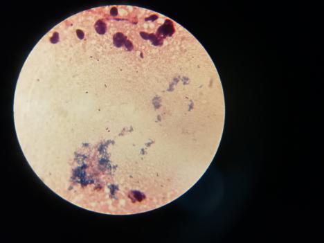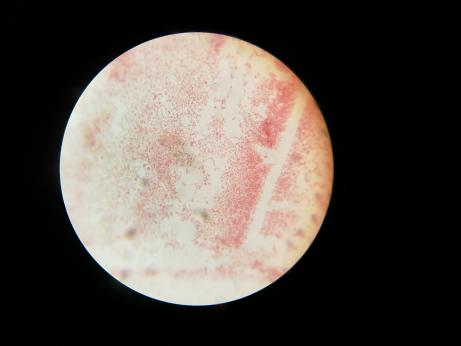 抽取病鸡血液,做抹片,革兰氏染色。见下图: