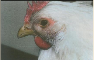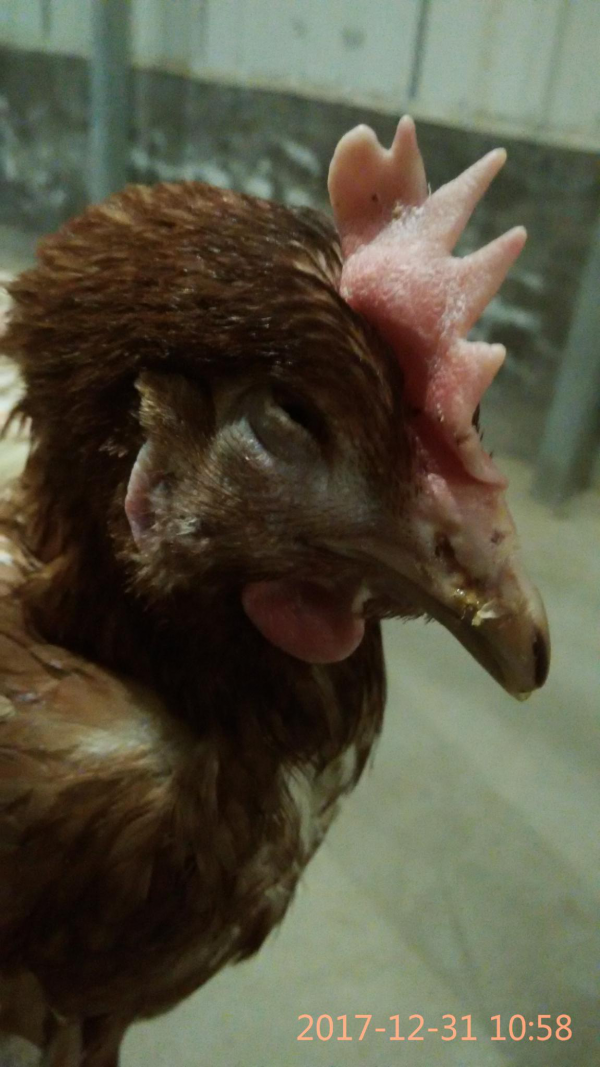 IC在鸡育成阶段和产蛋阶段高发,各个品种鸡对Apg都易感,尤其是8-16周龄阶段育成及产蛋鸡群。老龄鸡感染较为严重。发病初期主要表现为采食量和饮水量轻微下降,打喷嚏,流出的鼻液先为清亮色,三到四天后转为白色脓性鼻涕,并伴着流泪,眼肿大,严重时整个头部肿大,眼睛内陷,部分蛋鸡眼睛失明。IC的一个特征是潜伏期短,接种培养物或分泌物后24-48h内即可发病。