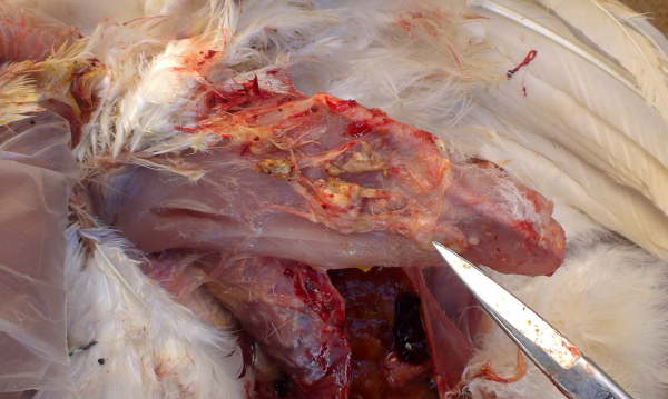 2、注射部位不当或者由于再注射过程中针尖刺到骨头导致针尖带钩,导致注射部位出现严重的组织反应,并对禽群造成进一步的伤害 。