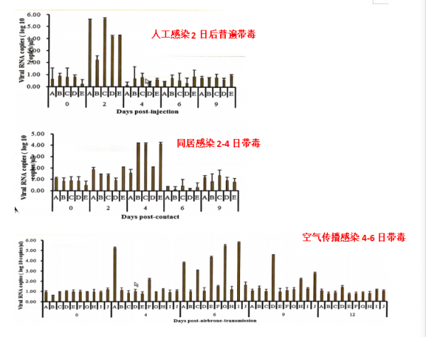 1.2通过隔离器进行人工感染后的同居感染试验和空气传播感染试验,结果表明病毒可以通过接触传播和空气传播!
