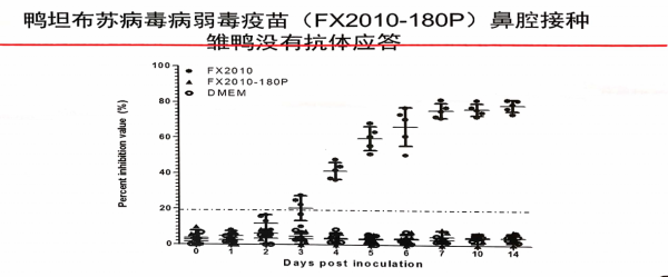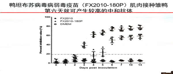 疫苗无法通过黏膜免疫产生有效的免疫应答,只能通过肌肉注射的方式,免疫后4-6天能够产生中和抗体,但应该考虑过早免疫,雏鸭母源抗体的影响,同时也应该考虑免疫后抗体持续期能否保护至出栏,所以应该进行科学的抗体监测来制定合理的免疫方案。