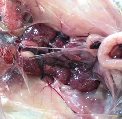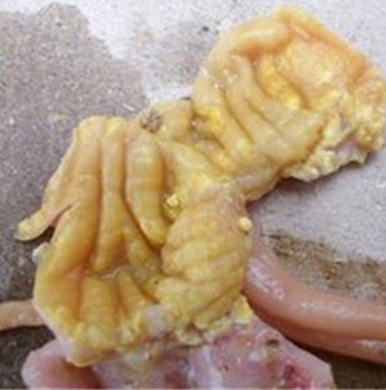 T-2毒素 | 羽毛生长不良,口腔影响胃肠道机能,导致肠道出血以及黏膜水肿坏死溃疡,神经失调,食欲下降、产蛋性能降低,免疫 |