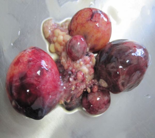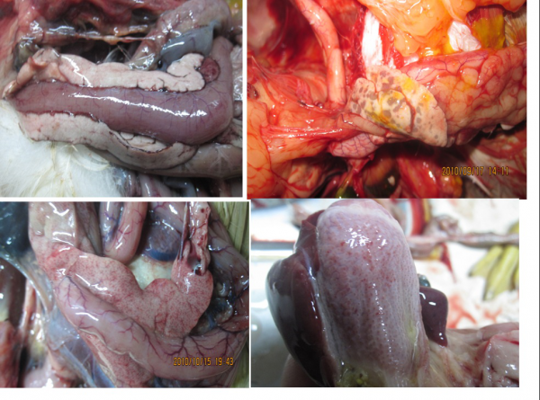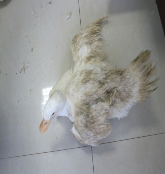 蛋鸭/种鸭:雏鸭、育成鸭发病主要表现翻个、瘫痪等为主的神经症状,死亡率较高(未免疫区发病后,死亡率最高可达50%);产蛋鸭发病主要表现一过性降蛋,死亡率较低(5%左右),临床症状主要表现为高烧、采食量产蛋率一过性下降;蛋种鸭的种蛋受精率降低10%左右;公鸭睾丸出血、萎缩,精子质量下降、受精率低。