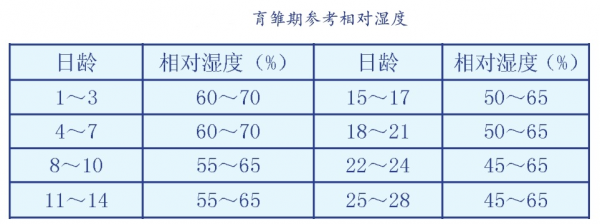 (1)育雏期间,应该使鸡群处于适当的湿度条件下,这样既能保证雏鸡的舒适性,也能降低鸡舍中的粉尘含量。
